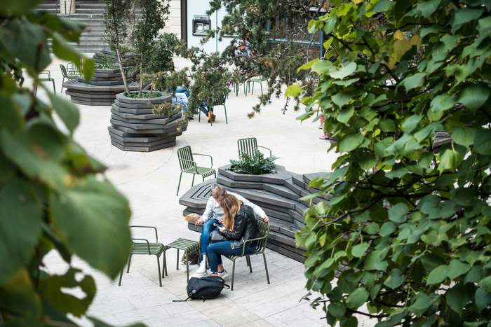 Our work typically extends well beyond the site boundaries, seeking the opportunity to activate and rejuvenate the surrounding public realm by creating, whenever possible, green oases of calm where to socialise, work and relax. Moreover we strive to improve urban legibility and connections, which, we believe, are fundamental qualities to create a convivial and pleasant work environment.